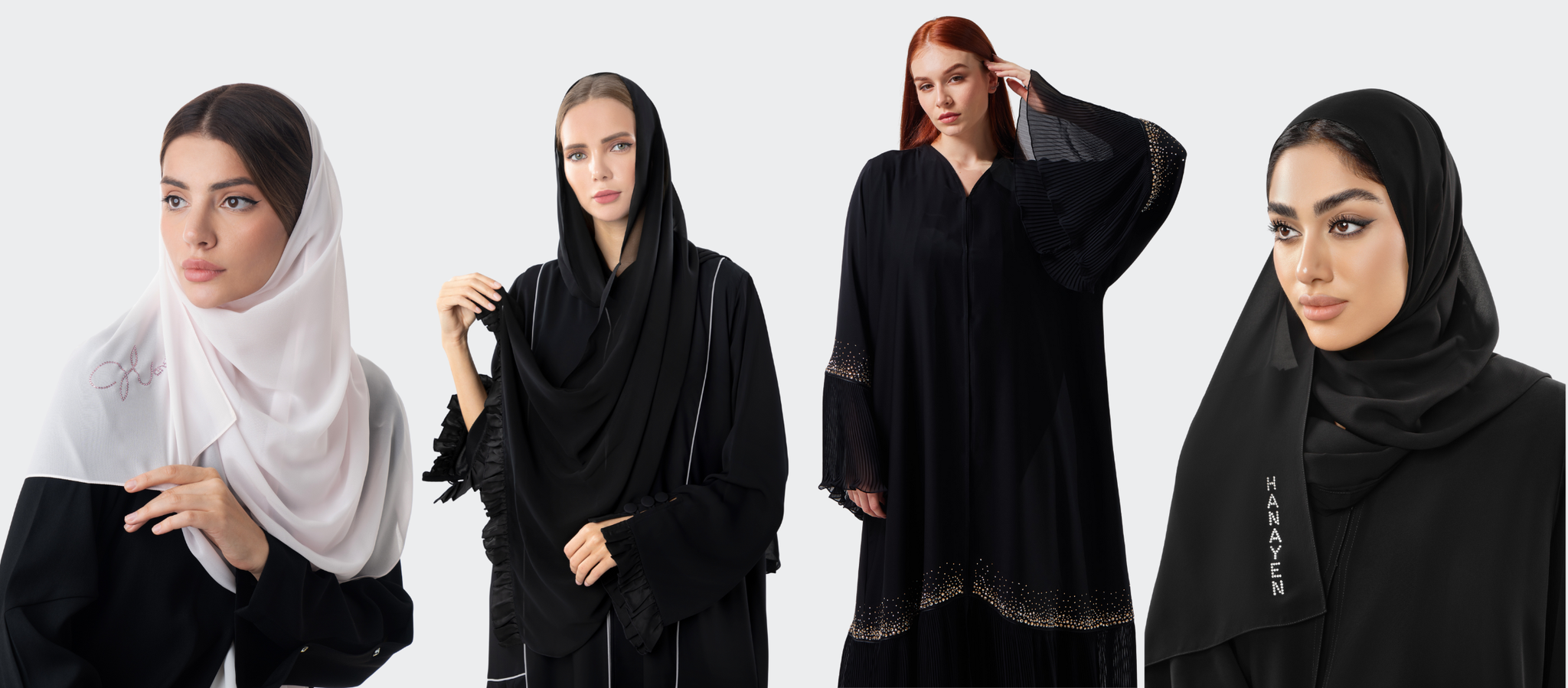 Find the top brand for sheilas and abayas in Dubai - Hanayen. Figure out Hanayen's exclusive and unique designs that offer a modern twist to traditional Arabian attire. Explore Hanayen's diverse collection of sheilas and abayas that showcase unique designs and styles to suit every woman's taste and personality, alongside our bespoke creations.